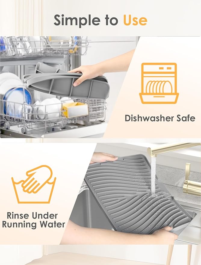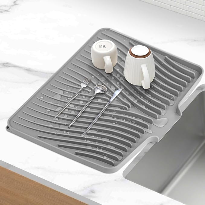 Elevate your kitchen essentials with the Luxoria07 Premium Silicone Dish Drying Mat – a must-have for mess-free, modern countertops. Designed in a sophisticated grey tone, this 15.8 x 13-inch drying tray features a raised drain lip that prevents water overflow and keeps surfaces dry and spotless. Crafted from heat-resistant, BPA-free silicone, it doubles as a trivet for hot pots and pans while its non-slip base ensures stability during daily use. Whether drying dishes, glassware, or delicate utensils, this mat is your go-to solution for effortless cleanup and organized kitchen living. Stylish, functional, and built to last – only at Luxoria07.